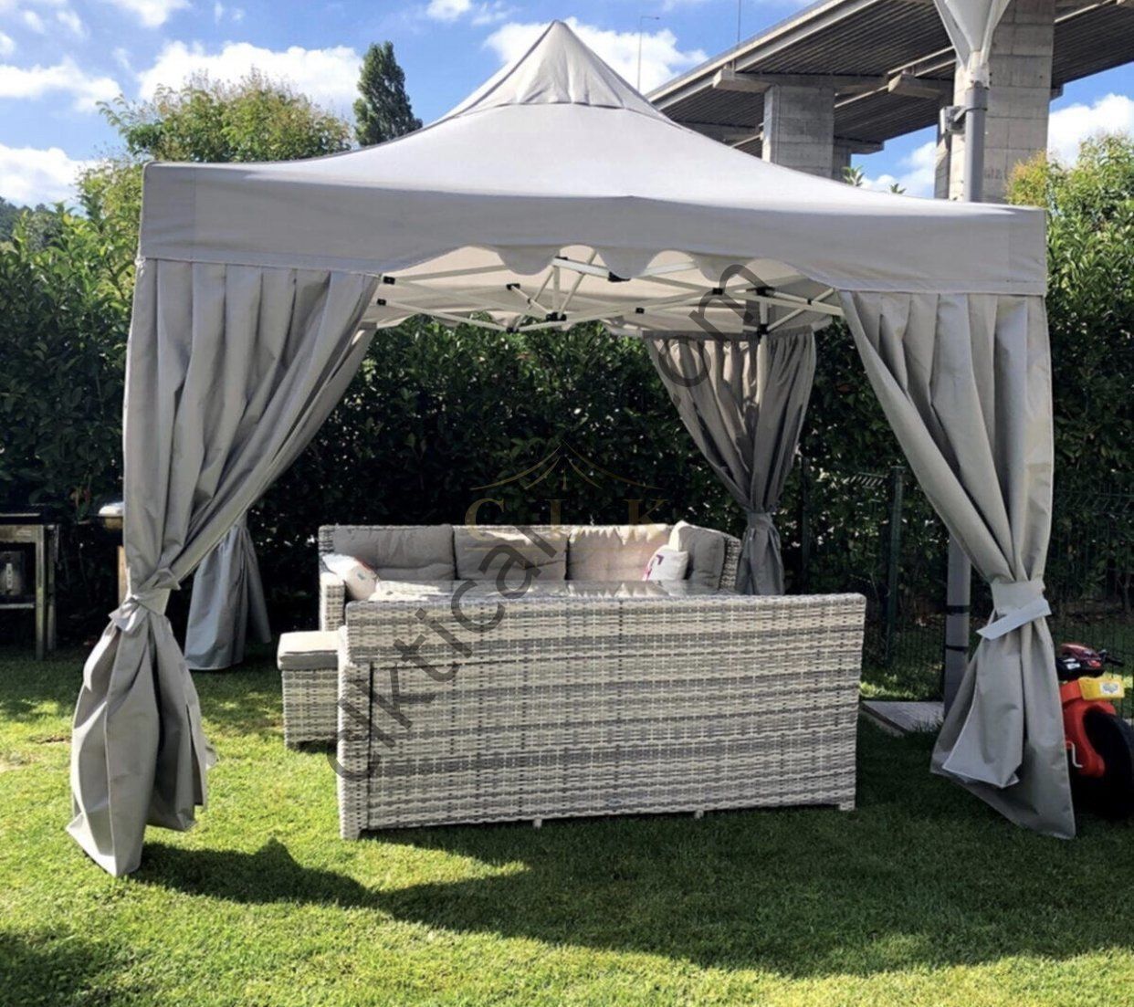 4 tasarımcımız perdeli yeni katlanabilir tente Bungalow bahçe serisi ile stil ve gizlilik için en iyi gazebo çadırı üretti. En iyi taşınabilir lüks olan katlanabilir tente, paslanmaya karşı dayanıklı ve tek parça kolay kurulumun yanı sıra sektördeki en güçlü çerçeveye sahiptir. CLK Garden bahçe çadırı premium çözüm boyalı akrilik üst ve perdeler yüksek sıcaklıklara, ultraviyole ışığa, suya ve güneşin solmasına karşı dayanıklıdır.
